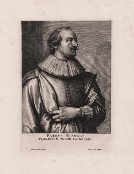 Incisione tratta dalla celebre Icones principum, virorum, doctorum, pictorum, chalcographorum, di Anton van Dyck, edita per la prima volta ad Anversa nel 1645. Opera celebre ed importante, vero monumento dell’arte incisoria fiamminga del sec. XVIII, contiene le biografie ed i ritratti degli uomini illustri che Van Dyck aveva conosciuto econ i quali aveva avuto importanti rapporti. L’artista ne eseguì le effigi in numerosi dipinti e disegni che poi decise di pubblicare, affidandone la trasposizione calcografica ai migliori incisori del suo tempo, come Bolswert, Pontius, Vorsterman, de Jode, Hollar, molti dei quali aveva avuto come condiscepoli nell’atelier di Rubens. Acquaforte con ritocchi al bulino, stampata su carta vergata coeva, con margini, in ottimo stato di conservazione. Etching and engraving, circa 1645, signed on plate at lower edge. A fine impression, printed on contemporary laid paper, with margins, very good condition. From Icones principum, virorum, doctorum, pictorum, chalcographorum by Anton van Dyck, printed for the first time in Antwerp, 1645. A famous and important work, a real monument of the Flemish engraving art of the XVIII century, containing the biographies and portraits of the famous artists Van Dyck had met and with whom he had worked. ' Following the success of his portrait paintings and in the tradition of Italian and Flemish portrait series, Van Dyck decided to organise a print publication containing portraits of the most prominent men during his lifetime, divided into three categories: princes, politicians and soldiers (16), statesmen and scholars (12), artists and art connoisseurs (52). ' The initial idea could have been that Van Dyck would etch the faces (a process possibly learnt from Vorsterman) while others would finish the plates in engraving. Designs were needed for the plates and several drawings and oil sketches (grisailles, sometimes in different versions) have survived. Van Dyck only etched 17 plates himself, while he commissioned others to complete the set, overseen by Lucas Vorsterman I (especially after Van Dyck settled in England in the Spring of 1632). Although this project was started by Van Dyck around 1630, he never saw it completed. ' The Antwerp publisher Maarten van den Enden may have been involved from the start as eighty early impressions bear Van den Enden's address. They are engraved by Paulus Pontius (30 plates), Lucas Vorsterman I (22), Pieter de Jode II (12), Schelte a Bolswert (7), Robert van Voerst (4), Willem Hondius (2), Willem Jacobsz Delff (1), Cornelis Galle (1), and Nicolaes Lauwers (1). It is known that Van den Enden was in debt to Gillis Hendricx around 1644, the Antwerp publisher who must have obtained Van den Enden's plates which he published in 1645 in the first edition of these plates (containing between 100 and 104 portrait plates). ' Hendricx continued to publish these plates until his death in 1677 when they were auctioned off by the St Luke guild (keeping the Iconography plates together). It is not clear who bought these plates but they re-appeared around 1720 when they were published by Hendrick and Cornelis Verdussen in Antwerp. Cfr.