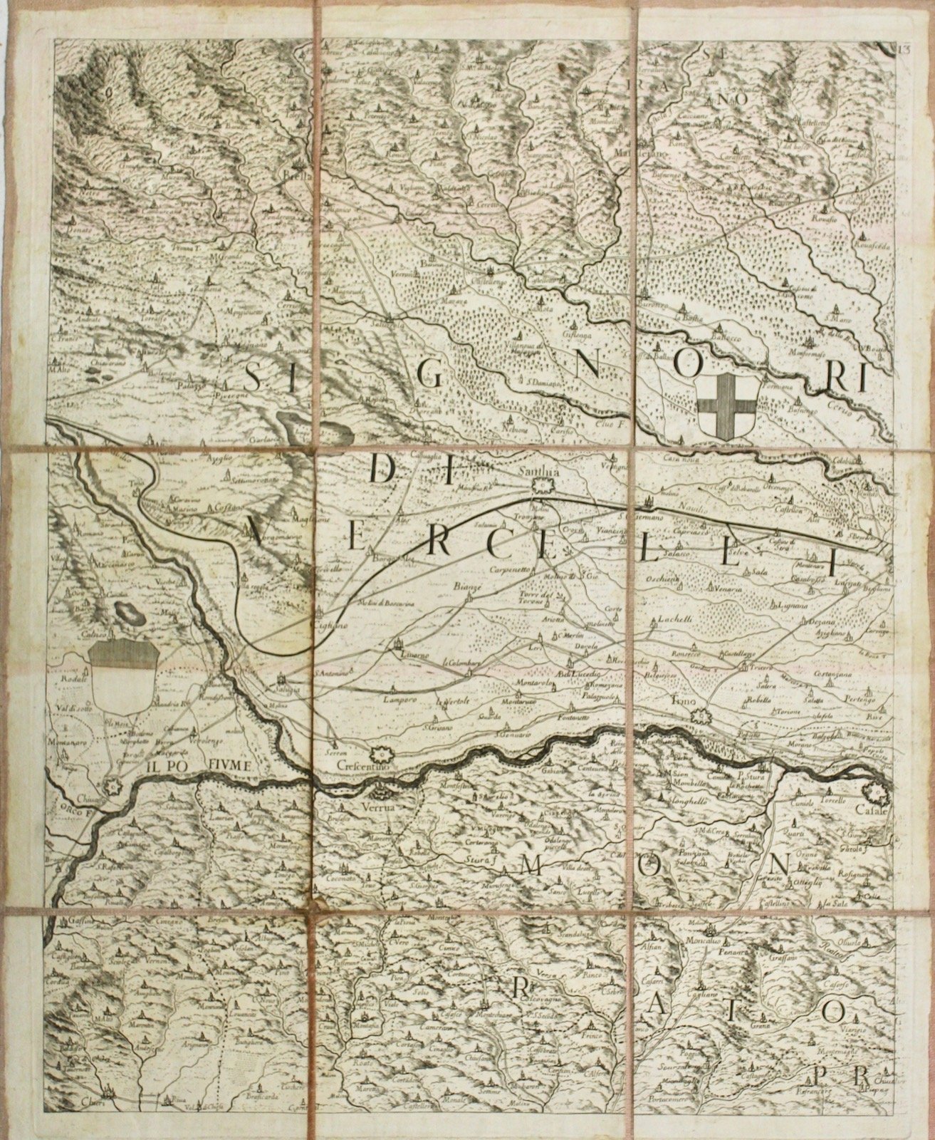 Incisione in rame, mm 450x355. Foglio parziale della grande "Carta geografica degli stati di S. M. il Re di Sardegna" raffigurante il Piemonte fra Biella a nord, a Chieri a sud, a Casale M. ad est.