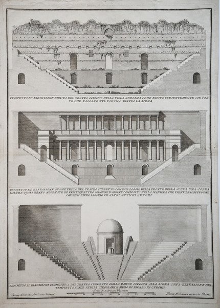 Prospetto ed elevazione diruta del Teatro scenico della Villa Adriana. / Prospetto ed elevazione geometrica del Teatro.