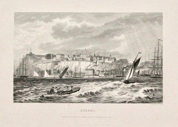 Incisione in acciaio, mm 103x170 (l'immagine) su foglio di mm 203x270 raffigurante una bella veduta della città canadese presa dal mare con scena di velieri in primo piano. Buon esemplare con minime mende marginali.<BR><BR>