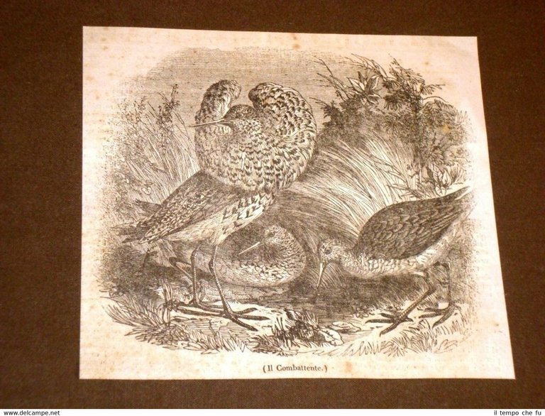 Rarissima incisione del 1836 Il combattente - Uccello - Ornitologia