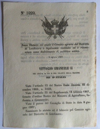 Regio Decreto 5222 Lendinara stabilimento di pubblica utilità