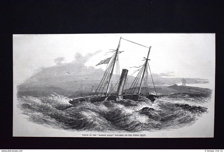 Rara incisione estratta da pubblicazione del 1851. .incisione che ha quindi oltre 167 anni! Relitto del piroscafo "Border Queen", sull'isolotto di Vinga, Svezia Dimensioni Cm 24,00 x 12,00 ILN1851 - 13 Qualora vogliate delle scansioni migliori contattateci, soddisferemo ogni vostra richiesta. Paypal Carta di credito Bonifico bancario Accuratamente adagiate su un cartoncino e protette da pellicola trasparente rigida, il tutto viene inserito dentro plico di adeguate dimensioni per proteggerne l'integrità.