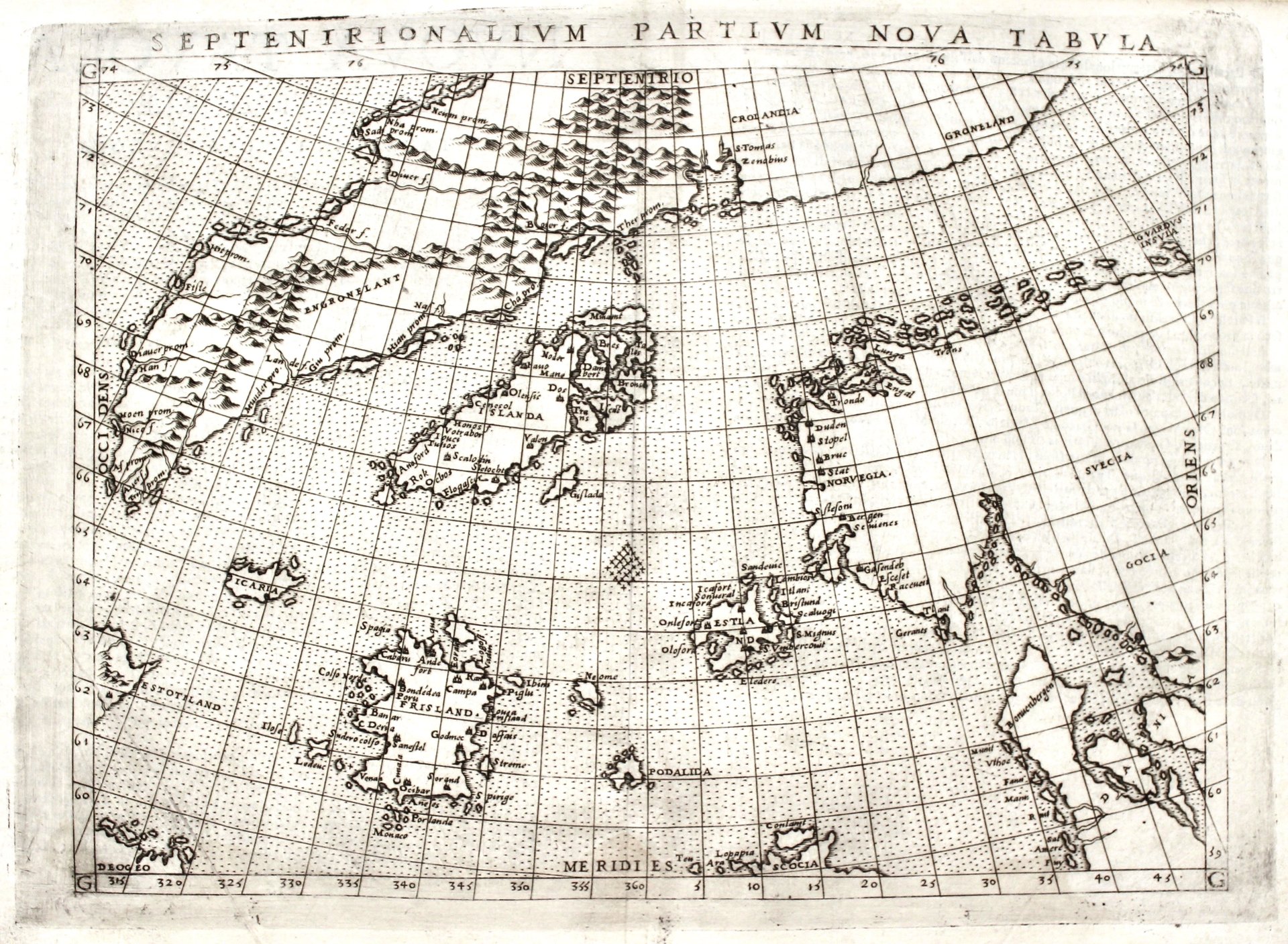 Incisione in rame, mm 183x261. Ripresa della celebre "Carta de Navegar…" del nord d'Europa dei fratelli Zeno, pubblicata nel 1558 in "Dei Commentari dei viaggi in Persia…e dello scoprimento dell'isole Frislanda, Eslanda, Engrouelanda, Estotilanda, & Icaria, fatto sotto il polo artico, da due fratelli Zeni, M. Nicolò il K. e M. Antonio". Questa carta reincisa e ridotta fu inserita nella traduzione italiana della "Geografia" di Tolomeo edita da Ziletti e curata da Ruscelli fin dal 1561, e poi reincisa appositamente per l'edizione del 1574, che si differenzia per piccoli particolari dell'incisione dalle precedenti e dalle posteriori, oltre che per l'impostazione tipografica del testo al verso. Buone condizioni, margine superiore rifilato irregolarmente. Ginsberg, Printed maps of Scandinavia and the Artic, 26.<BR>Copper engraving, mm 183x261. Reissue of the famous "Carta de Navegar…" of the Zeno brothers, published in 1558 in "Dei Commentari dei viaggi in Persia…e dello scoprimento dell'isole Frislanda, Eslanda, Engrouelanda, Estotilanda, & Icaria, fatto sotto il polo artico, da due fratelli Zeni, M. Nicolò il K. e M. Antonio". The map was reduced and re-engraved for the 1561 italian edition of Ptolemy's "Geographia" curated by Ruscelli and published by Valgrisi. In 1574 the map was re-engraved with minor differences in map and text. Good condition, upper margin irregularly trimmed. Ginsberg, Printed maps of Scandinavia and the Artic, 26.<BR>