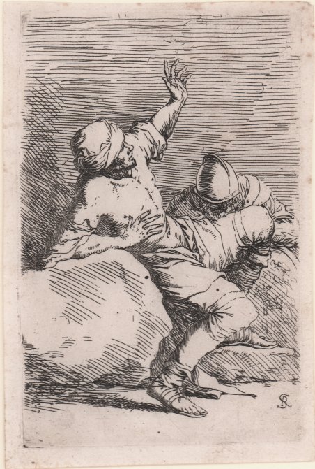 Acquaforte e puntasecca, 1656/8 circa, monogrammata in lastra. Della serie conosciuta come ' Diverse Figure. Bellissima prova, ricche di toni, impressa su carta vergata coeva, con sottili margini, in eccellente stato di conservazione. Esemplare in secondo stato, tutte con il monogramma; le prove di primo stato, ove esistano, sono senza monogramma e note in un solo esemplare. Conosciuta con il nome di ' Diverse Figure ' o ' Figurine, rappresentano senza dubbio l’opera grafica più famosa di Salvator Rosa. Già in epoca era considerata un modello per i giovani artisti, e venne più volte copiata sia in Italia che all’estero. Nelle figure dei soldati in costumi esotici oppure d’invenzione il Rosa svolge un tema trattato da molti incisori quali Callot, Della Bella e Filippo Liagno, con il quale aveva un rapporto stretto, e tramite il quale probabilmente arrivò a conoscere i soggetti dei lanzichenecchi del XV secolo di Dürer e Urs Graf. ' Una lettera dell’artista all’amico Ricciardi datata 1656 permette di datare la serie con sicurezza la periodo 1656/8. Bartsch elenca l’opera composta da 61 stampe, mentre Rotili e Wallace descrivano alcune rare variante dei soggetti, poi mai inserite nella serie, portando il numero delle Figurine a 72. Etching and drypoint, circa 1656/8, monogrammed in plate. From the series known as ' Diverse Figure. Beautiful proof, rich in tone, impressed on contemporary laid paper, with thin margins, in excellent condition. Example of the second state, sjowing the Rosa’s monogram; first-state proofs, where they exist, are unmonogrammed and known in only one copy. Known as ' Diverse Figure ' or ' Figurine, they are without doubt the most famous graphic work of Salvator Rosa. Already at that time it was considered a model for young artists, and was copied several times both in Italy and abroad. In the figures of soldiers in exotic or invented costumes, Rosa develops a theme treated by many engravers such as Callot, Della Bella and Filippo Liagno, with whom he had a close relationship, and through whom he probably came to know the subjects of the fifteenth-century Lansquenets by Dürer and Urs Graf. A letter from the artist to his friend Ricciardi dated 1656 allows the series to be dated with certainty to the period 1656/8. Bartsch lists the work as consisting of 61 prints, while Rotili and Wallace describe some rare variants of the subjects, later never included in the series, bringing the number of Figurine to 72. Cfr. Bartsch 50 stato unico; Wallace 47 stato unico.