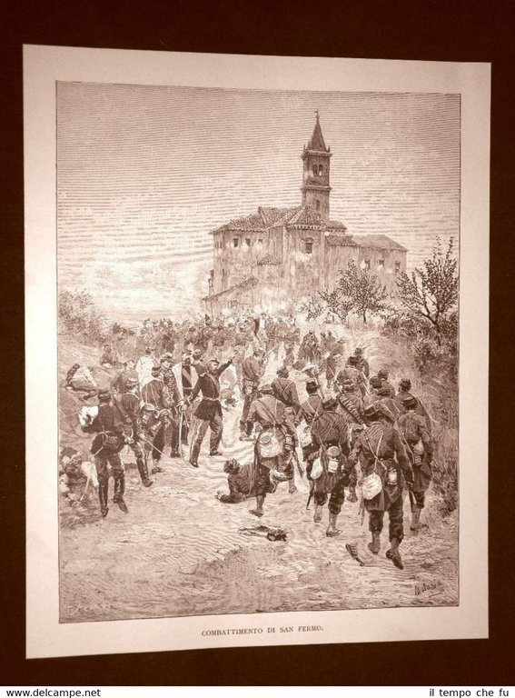Stampa del 1892 Giuseppe Garibaldi nel combattimento di San Fermo
