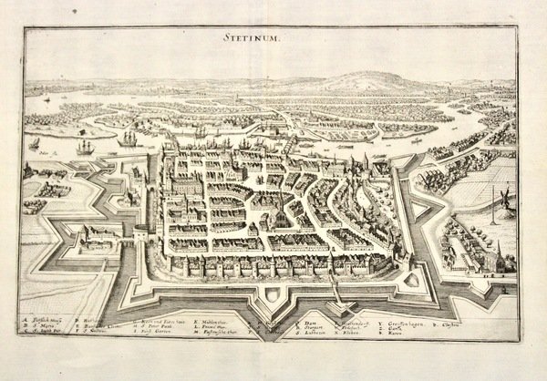 Incisione in rame, mm 207x328. Veduta generale prospettica tratta da "Neuwe Archontologia cosmica" di Johann Gottfried. Ottimo esemplare. <BR>Copper engraving, mm 207x328. Panoramic bird-eye view of the town from "Neuwe Archontologia cosmica" by Johann Gottfried. Very good condition. <BR>