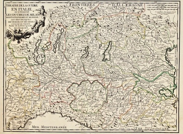 Theatre de la guerre en Italie ou se trovent les Duchez de Milan, Mantoue, Parme et Modene, Les Republiques de Venise et de Genes, l'Eveché de Trente, partie de la Principauté de Piemont.