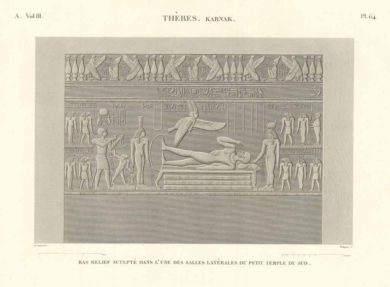 Thèbes. Karnak - Bas-reliefs sculpté dans l'une des salles latérales du petit temple du sud