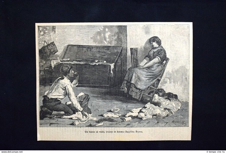 Un bacio al volo, quadro di Angelo Dall'Oca Bianca Incisione del 1886