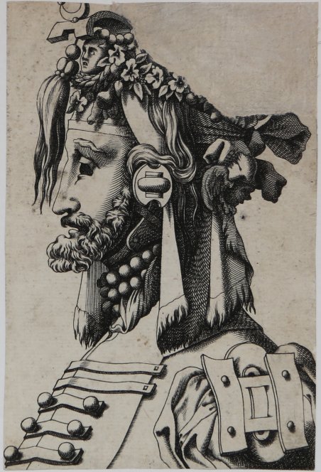 Bulino, 1560 circa, privo di data e iscrizioni.Bella impressione, su carta vergata coeva con filigrana, rifilata ai margini, mancanza nell’angolo superiore sinistro, con perdita di inciso, altrimenti in buono stato di conservazione.Si tratta di una copia, in controparte, di uno dei sei busti maschili appartenenti a una serie di dodici incisioni (le restanti sei raffigurano busti femminli).La serie originale generalmente viene attribuita a René Boyvin; mentre Robert-Dumesnil pensava addirittura che i soggetti fossero di Rosso Fiorentino.Ma Yves Metman, sulla base di un documento del XVI secolo, propose di assegnare le stampe a Pierre Milan e di istabilire quale terminus ante quem il 1559 ("Un graveur inconnu de l'Ecole de Fontainebleau: Pierre Milan", in Bibliothèque d'Humanisme et Renaissance , Notes et documents, I, 1941, pp. 202-214.).Emmanuelle Brugerolles, invece, attribuisce i disegni a Léonard Thiry (Le dessin en France au XVIe siècle: dessins et miniatures des collections de l'Ecole des Beaux-Arts, 1994, pag 108); ipotizzando che Thiry avrebbe potuto usare un modello di Rosso poi adattato per l'incisione. Engraving, 1550 circa, unlettered.Good example, printed on contemporary laid paper with watermark, lack in the upper left affecting the image, otherwise in good condition.This print in a copy of an engraving that belongs to a series of twelve engravings; six of which show two male busts each, and the other six, female busts. It is common to find those prints cut in two and the set described as a series of twenty four prints. The original drawings are kept in Paris, in the Ecole nationale superieure des Beaux-Arts (Mas. 1296, Rec. 19). The drawings and the prints used to be unanimously attributed to René Boyvin and Robert-Dumesnil even thought the prints were after Rosso Fiorentino. But Yves Metman, using a 16th century document, proposed to give the prints to Pierre Milan and to set a terminus ante quem in 1559 ('Un graveur inconnu de l'Ecole de Fontainebleau: Pierre Milan', in Bibliothèque d'Humanisme et Renaissance, Notes et documents, I, 1941, pp. 202-214.). Emmanuelle Brugerolles attributed the drawings to Léonard Thiry (Le dessin en France au XVIe siècle: dessins et miniatures des collections de l'Ecole des Beaux-Arts, 1994, p. 108). She suggests that Thiry could have used a model given by Rosso, and adapted it for the engraving. Cfr.