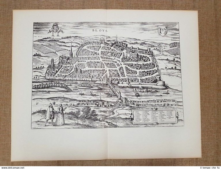 Veduta della città di Blois Francia Anno 1575 Braun e Hogenberg Ristampa