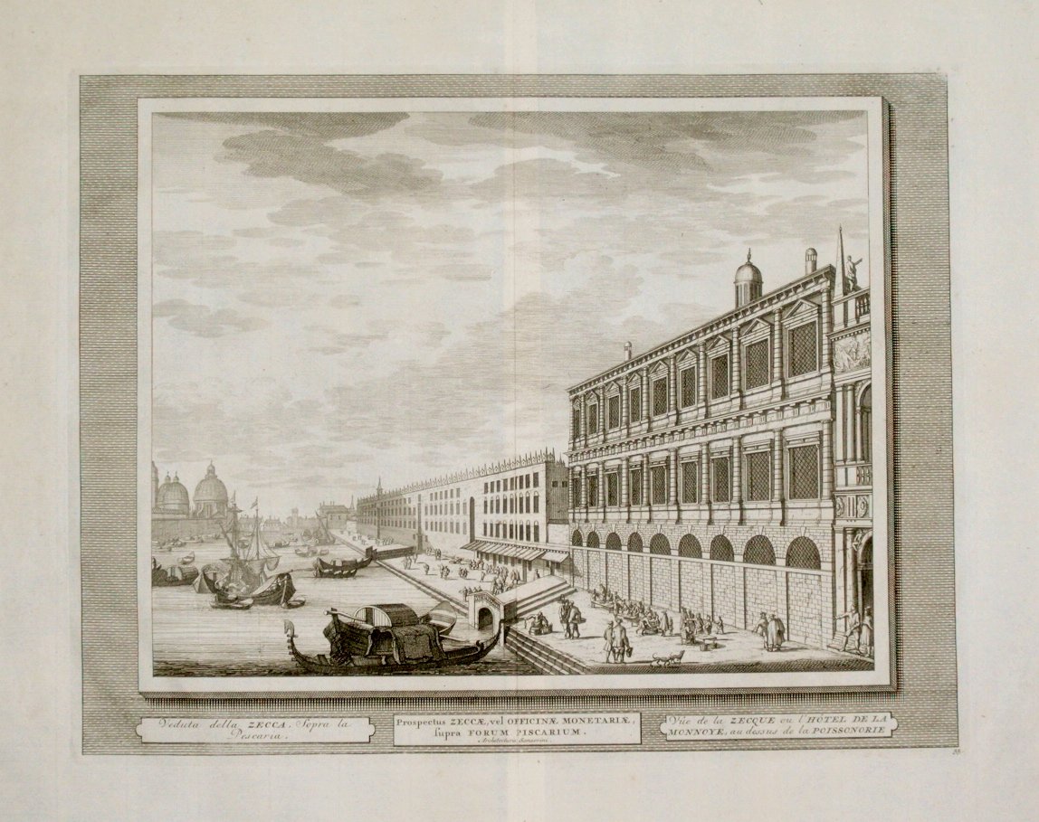 Veduta della Zecca, sopra la pescaria. (titolo ripetuto in latino al centro e francese a d.)