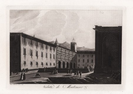 Veduta tratta dalla serie Viaggio pittorico della Toscana di Francesco Fontani fu pubblicato per la prima volta a Firenze, dall’editore Giuseppe Tofani, tra il 1801 ed il 1803. L’opera è considerata uno dei più importanti e suggestivi libri figurati sulla Toscana, sia per la qualità grafica delle incisioni sia per la gran quantità di località ritratte. Nei tre volumi in folio che compongono questa ponderosa pubblicazione sono, infatti, inserite 209 tavole, finemente incise all’acquatinta dai fratelli Antonio e Jacopo Terreni (attivi a Livorno e Firenze tra la fine del diciottesimo e l’inizio del diciannovesimo secolo), da Giovanni Pera ed altri. Nove delle tavole della serie sono stampate a doppia pagina e raffigurano: la carta della regione, una pianta e la veduta delle città principali: Firenze, Siena, Pisa, Livorno. Tutti gli altri esemplari sono stampati a foglio singolo e raffigurano architetture o paesaggi relativi sia alle principali località sia ai centri minori della Toscana. Notevole fu il successo del Viaggio Pittorico della Toscana, anche per il seguito di riproduzioni e di rifacimenti cui fu sottoposto, in Italia e all’estero, gran parte del suo corredo grafico. Moltissimi altri libri furono, infatti, illustrati in seguito con incisioni derivanti dalla grafica dei fratelli Terreni, mentre una seconda edizione dell’opera venne alla luce, in formato ridotto, nel 1817/18. ' Incisione in rame all’acquatinta, stampata ad inchiostro bruno su carta vergata coeva, ampli margini, lievissime bruniture, nel complesso in ottimo stato di conservazione. View taken from Viaggio pittorico della Toscana by Francesco Fontani was published for the first time in Florence by the publisher Giuseppe Tofani, between 1801 and 1803. The work is considered one of the most important and suggestive pictorial books on Tuscany, both for the graphic quality of the engravings and for the large number of places portrayed. In the three folio volumes there are 209 plates, finely etched in aquatint by the brothers Antonio and Jacopo Terreni (active in Livorno and Florence between the end of the eighteenth and the beginning of the nineteenth century), by Giovanni Pera and others. Nine of the plates in the series are printed double-page and depict the map of the region, a plan and a view of the main cities: Florence, Siena, Pisa, Livorno. All other plates are printed on single sheet and depict architecture or landscapes related to both major locations and minor centers of Tuscany. The success of Viaggio Pittorico della Toscana was remarkable, also because of the many reproductions and remakes to which most of its graphic material was subjected, in Italy and abroad. Many other books were, in fact, later illustrated with engravings deriving from the graphics of the Terreni brothers, while a second edition of the work came to light, in a reduced format, in 1817/18. ' Aquatint engraving, printed in brown ink on coeval laid paper, wide margins, very slight browning, overall in very good condition. Cfr. Cremonini pp. 145/148, 98; P. Frati, Livorno nelle antiche stampe, n. 302