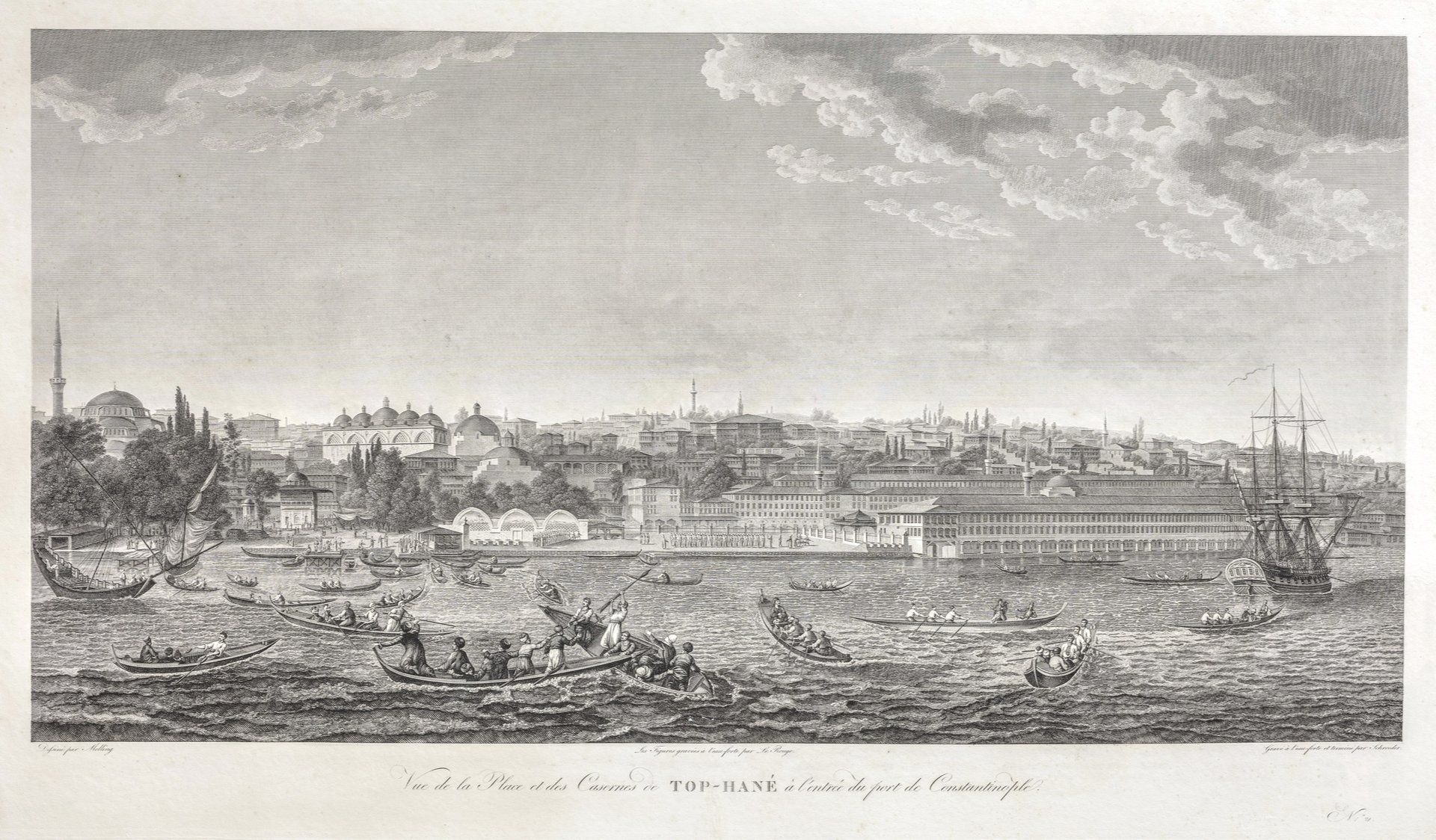 Vue de la place et des casernes de Top-Hanè à l’entrée du port de Costantinople