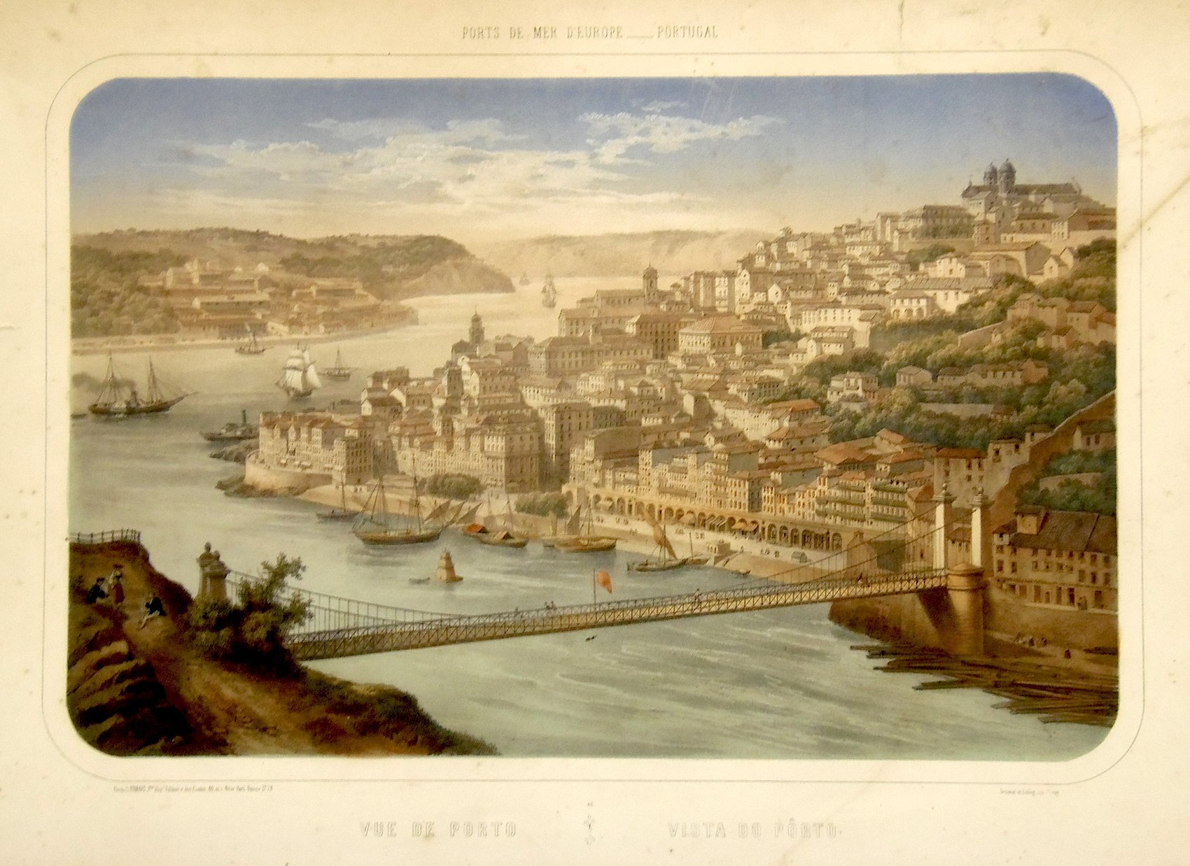 Litografia, mm 310x480, stampata a colori e rifinita a mano d'epoca. Splendida veduta panoramica. Ottimo esemplare a pieni margini con due strappi marginali e tracce di sporco. Isidore Laurent Deroy fu acquarellista, pittore e litografo francese allievo di Félix e del pittore Cassas. Insieme a Andrè Chapuy e Louis Lebreton fu autore di numerose serie di vedute di città, fra cui questa pubblicata dall'editore Turgis sia a Parigi che a New York. Litograph, mm 310x480, printed in colour and originally finished by hand. Spectacular panorama from "Ports de Mer d'Europe". Good example with two marginal tears and some surface dirt. <BR>