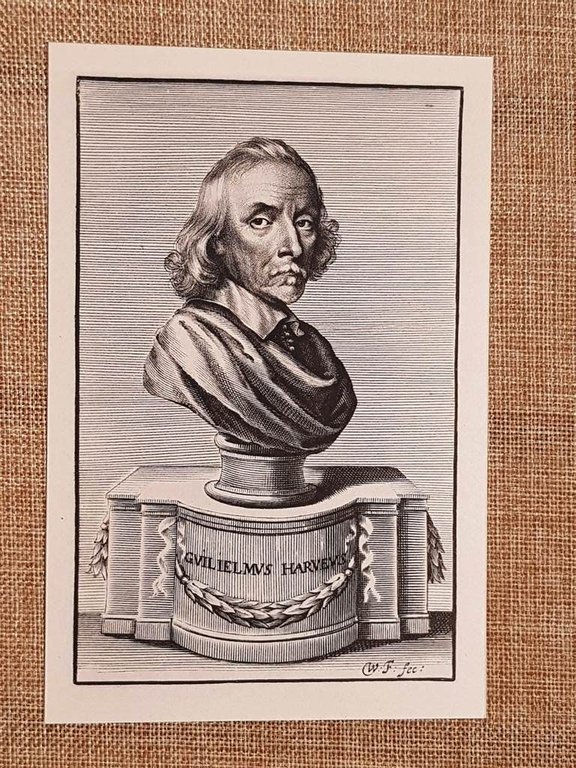 Rara incisione su carta speciale e non retroscritta Estratta da pubblicazione del 1888 William Harvey (1578–1657) fu un medico e fisiologo inglese, celebre per aver formulato la prima descrizione scientifica completa della circolazione del sangue. Nato a Folkestone, studiò a Cambridge e poi all’Università di Padova, dove fu allievo di Girolamo Fabrici d’Acquapendente, maestro di anatomia. Nel 1628 pubblicò la sua opera fondamentale Exercitatio anatomica de motu cordis et sanguinis in animalibus, in cui dimostrò che il sangue circola in un sistema chiuso, pompato dal cuore attraverso arterie e vene. Questa scoperta confutò le teorie galeniche, che sostenevano la produzione continua del sangue nel fegato. Contributi principali: • Descrizione del moto cardiaco e del flusso sanguigno • Introduzione del metodo sperimentale in fisiologia • Fondazione della cardiologia moderna • Studi sull’embriologia e sulla generazione animale Fu medico personale di Giacomo I e Carlo I d’Inghilterra, professore Lumleiano e membro del Royal College of Physicians. Durante la guerra civile inglese, rimase fedele alla monarchia e perse molti dei suoi manoscritti. Morì nel 1657 a Roehampton, lasciando un’eredità scientifica che rivoluzionò la medicina. Dimensioni: Cm 9,00 x 14,00 Codice prodotto X-023 PayPal Carta di credito Bonifico bancario Inserita dentro plico di adeguate dimensioni per proteggerne l'integrità Spedizione con posta ordinaria o raccomandata scelta dall’Acquirente nel momento del pagamento Clicca qui per accedere al nostro Store ed al suo sterminato archivio