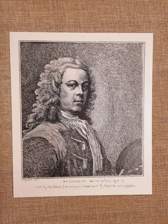 Rara incisione su carta speciale e non retroscritta Estratta da pubblicazione del 1888 William Hogarth (1697–1764) fu uno dei più originali artisti inglesi del XVIII secolo, celebre per le sue incisioni e dipinti satirici che ritraggono con acume la società londinese. Nato a Londra da famiglia modesta, si formò come incisore presso Ellis Gamble e si affermò come pittore autonomo a partire dal 1720. La sua arte si distingue per: • Serie narrative a soggetto morale, come La carriera di una cortigiana • (1732), La carriera di un libertino (1733), Matrimonio alla moda (1743–45) • Scene di genere e ritratti borghesi, come Il Capitano Coram (1740) e I bambini Graham (1742) • Incisioni satiriche su temi politici e sociali, tra cui Il vicolo del gin (1751), Il banchetto elettorale (1754), I quattro stadi della crudeltà • Trattato teorico The Analysis of Beauty (1753), dove introduce la “linea serpentinata” come principio estetico Hogarth fu anche attivo nella difesa del diritto d’autore, promuovendo l’Engravers’ Act (1735). La sua pittura, influenzata dal teatro e dalla letteratura inglese, anticipa il realismo sociale e il fumetto moderno. Morì a Londra nel 1764, lasciando un’eredità visiva e morale che influenzò generazioni di artisti. Dimensioni: Cm 19,00 x 23,00 Codice prodotto X-024 PayPal Carta di credito Bonifico bancario Inserita dentro plico di adeguate dimensioni per proteggerne l'integrità Spedizione con posta ordinaria o raccomandata scelta dall’Acquirente nel momento del pagamento Clicca qui per accedere al nostro Store ed al suo sterminato archivio