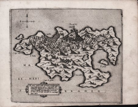 Rara veduta dell'isola di Zante, che fu sotto il dominio veneiziano dal 1484 al 1797. Tavola parte del celebre "Isole Famose" di Camocio.Tra il 1560 ed 1575 Camocio pubblicò circa quaranta carte di grande formato e molte furono le carte di piccolo formato pubblicate sciolte tra il 1566 e il 1574, che andarono successivamente a formare il volume noto col nome "Isole famose, porti, fortezze e terre marittime sottoposte alla Serenissima Signoria di Venetia, ed altri Principi Christiani, et al Signor Turco, nouamente poste in luce. In Venetia alla libreria del segno di San Marco". Le carte inserite nell’isolario di Camocio hanno la lastra ritoccata e un numero sequenziale aggiunto, mentre le prime prove sono caratterizzate dalla grande qualità di stampa e dall’assenza del numero. Gli esemplari con la numerazione sono, invece, quelli inseriti nelle edizioni dell'isolario edite da Donato Bertelli - imprint In Venetia alla libreria del segno di San Marco. Tale edizione, sebbene priva di data, risale a dopo il 1575, anno in cui il Camocio scomparve durante l'epidemia di pestilenza a Venezia e gran parte della sua tipogrfaia fu acquisita dal Bertelli.Raro primo stato, avanti la numerazione. Acquaforte e bulino, in buono stato di conservazione.Bibliografia: S. Bifolco, Città e Fortezze Principali del Mondo, in Bifolco-Ronca "Cartografia e Topografia Italiana del XVI secolo. Catalogo ragionato delle opere a stampa" (2018), pp. 126, 140-141. Rare first state before the number. From Camocio's "Isole Famose".This work, as was usual for Camocio and his other contemporary publishers, was on the market as loose map and later included in the "Isole famose, porti, fortezze e terre marittime sottoposte alla Serenissima Signoria di Venetia, ed altri Principi Christiani, et al Signor Turco, nouamente poste in luce. In Venetia alla libreria del segno di San Marco". The issue with the numbers are, instead, those inserted in the editions of the book published by Donato Bertelli - showing the imprint In Venetia alla libreria del segno di San Marco. This edition, although without date, dates back to after 1575, the year in which the Camocio disappeared during the pestilence epidemic in Venice and much of its typography was acquired by Bertelli.Etching with engraving, in good condition.Bibliografia: S. Bifolco, Città e Fortezze Principali del Mondo, in Bifolco-Ronca "Cartografia e Topografia Italiana del XVI secolo. Catalogo ragionato delle opere a stampa" (2018), pp. 126, 140-141. Cfr. G. Tolias, Mapping Greece, 0390; Zacharakis, A Catalogue of Printed Maps of Greece, 782.