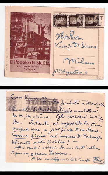 Cartolina / postcard "Il Popolo di Sicilia - Quotidiano Fascista" Scritta da OTTAVIO PROFETA
