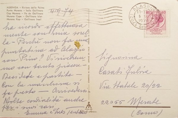 Cartolina - Albenga - Riviera delle Palme - Punta Murena - Isola Gallinara 1974