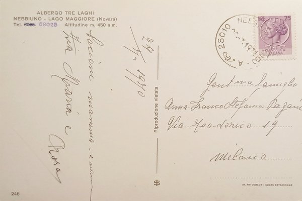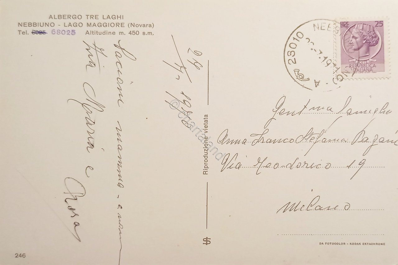 Cartolina - Albergo Tre Laghi - Nebbiuno - Lago Maggiore ( Novara ) - 1970