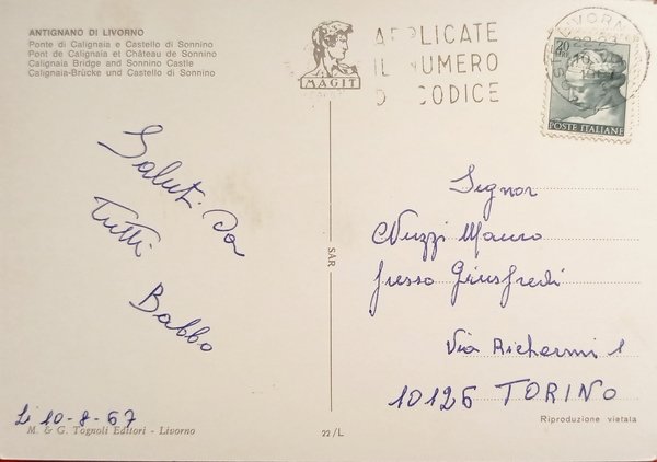 Cartolina - Antignano di Livorno - Ponte di Calignaia e Castello di Sonnino 1967
