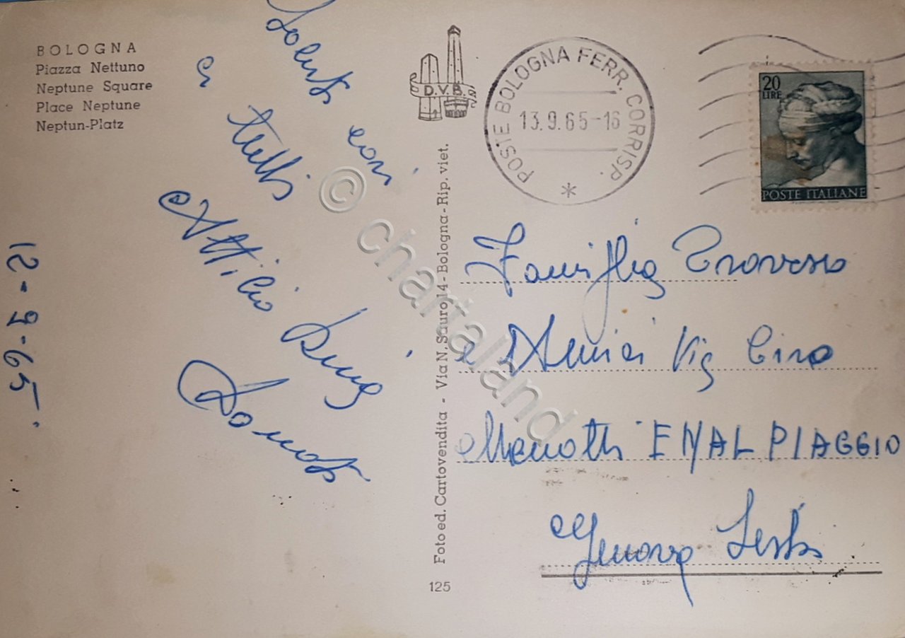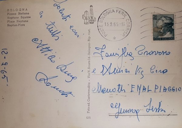 Cartolina - Bologna - Piazza Nettuno - 1965