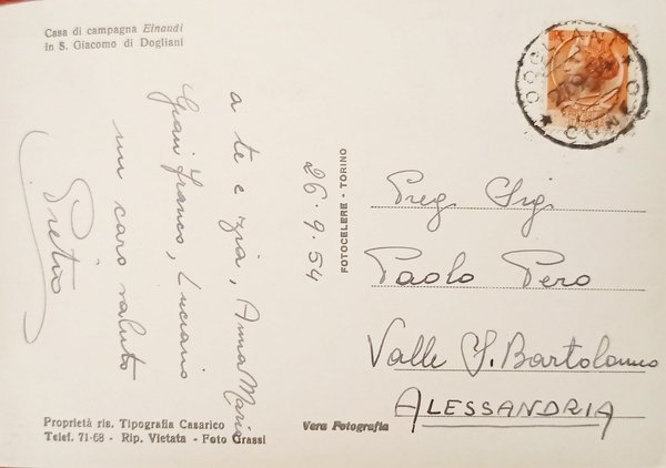 Cartolina - Casa di Campagna Einaudi in S. Giacomo di Dogliani - 1954