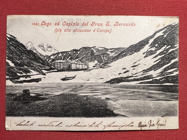 Cartolina - Lago ed Ospizio del Gran S. Bernardo - 1904 ca.