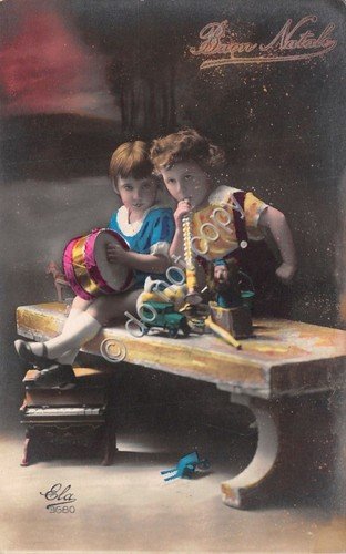 Cartolina - Postcard - Buon Natale - bambini - giocattoli