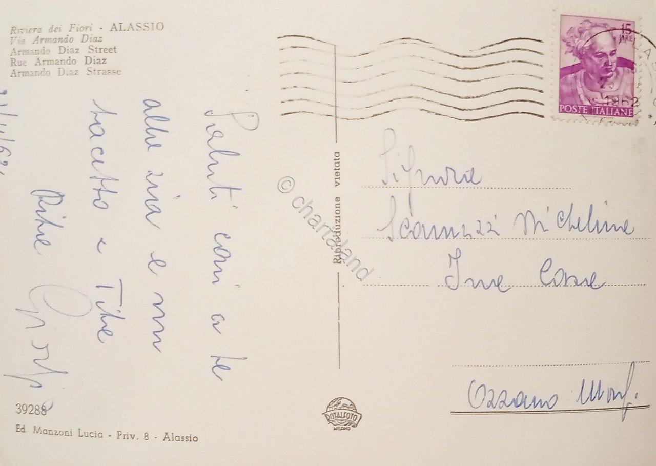 Cartolina - Riviera dei Fiori - Alassio - Via Armando Diaz - 1962