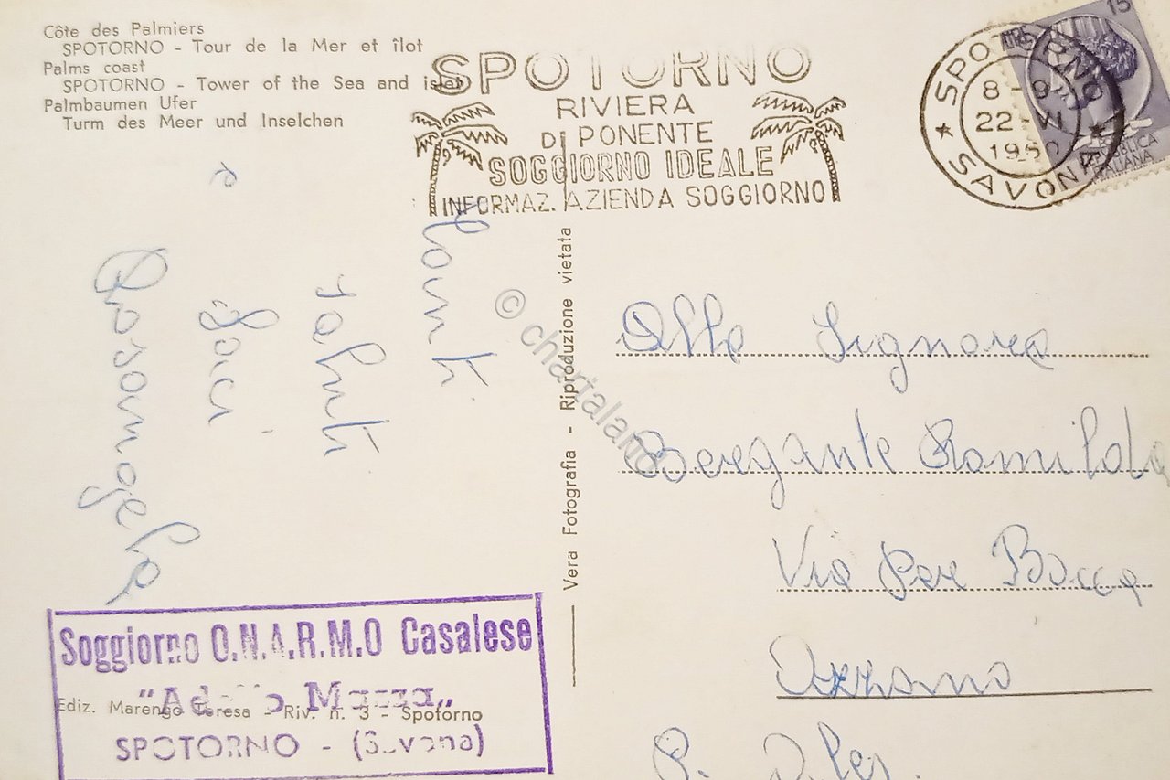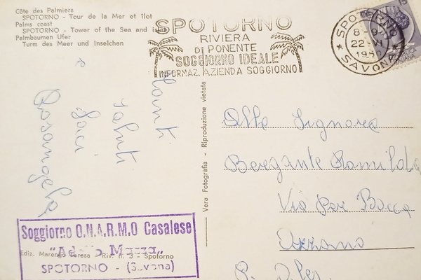 Cartolina - Riviera delle Palme - Spotorno - Torre del Mare e Isolotto - 1960
