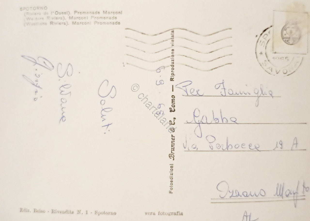 Cartolina - Riviera di Ponente - Spotorno - Viale Marconi - 1965