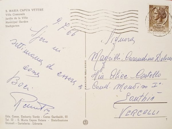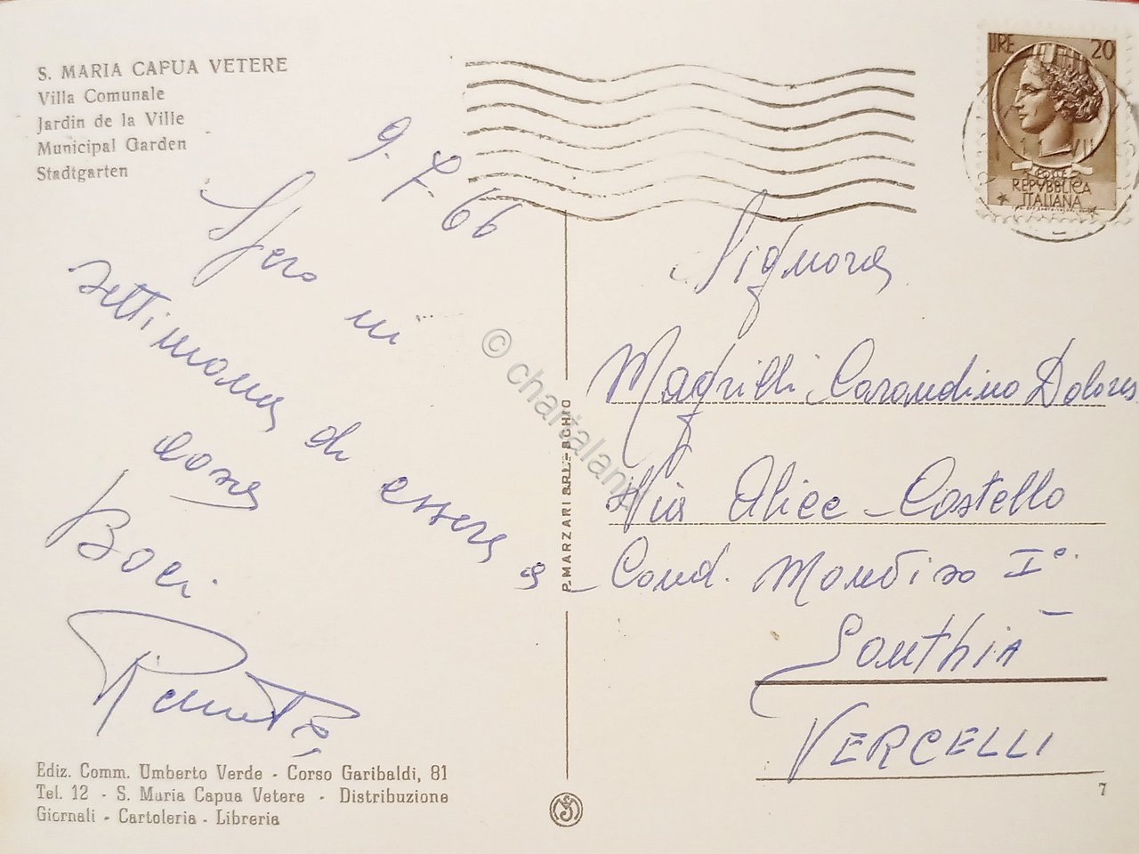 Cartolina - S. Maria Capua Vetere ( Caserta ) - Villa Comunale - 1966