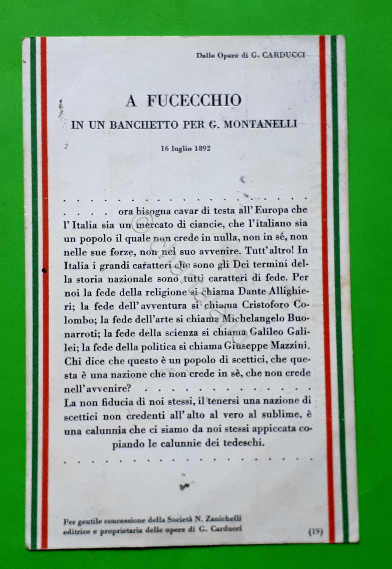 Cartolina - A Fucecchio - In un banchetto per G. Montanelli - 1917