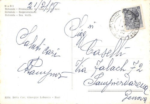 Cartolina Bari Rotonda Lungomare 1958
