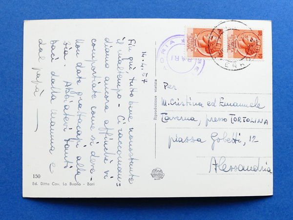 Cartolina Bari Vecchia - Corte del Catapano - 1957 1957 Cartolina formato grande - viaggiata Condizioni buone, come da foto Per appassionati, studiosi e collezionisti