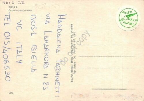 Cartolina Biella panorama sticker Associazione Nazionale Alpini