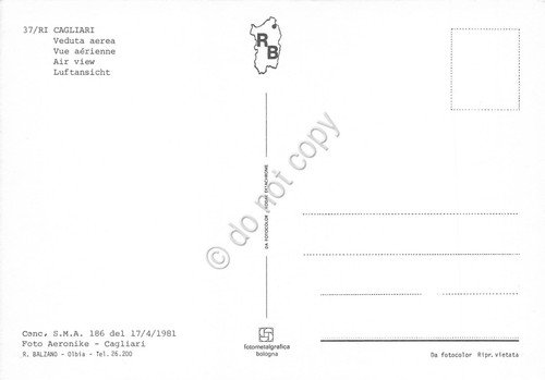 Cartolina Cagliari panorama parziale vista aerea con porto