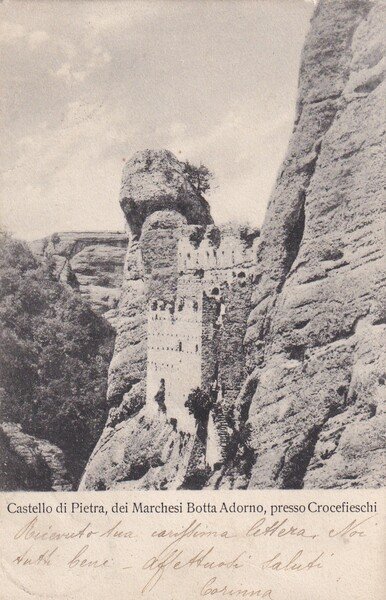 Cartolina Castello di Pietra, dei Marchesi Botta Adorno, presso Crocefieschi (Genova). 1906