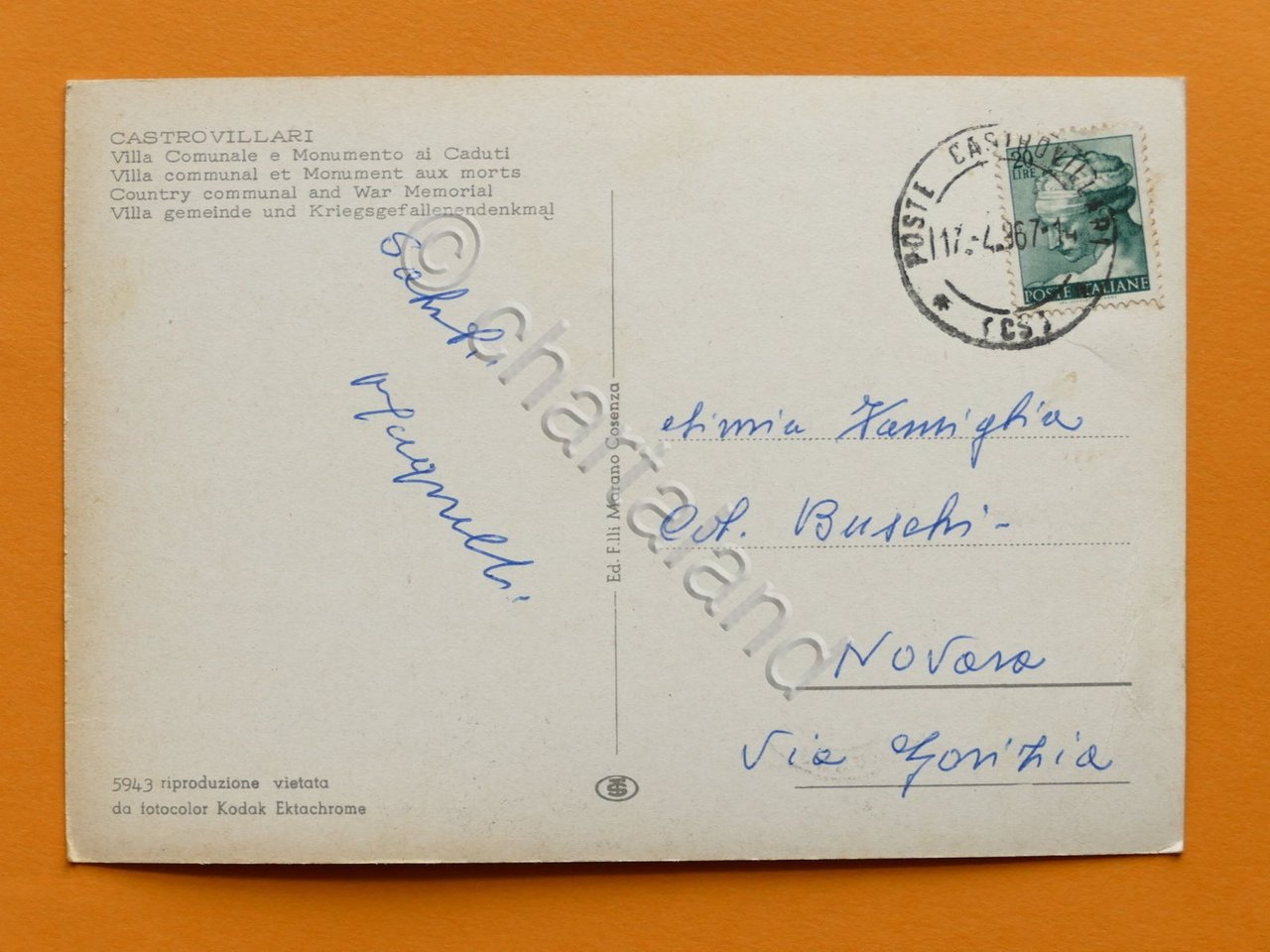 Cartolina Castrovillari - Villa Comunale e Monumento ai Caduti - 1967 1967 Cartolina formato grande - viaggiata Condizioni buone, come da foto Piega all'angolo inferiore sinistro Per appassionati, studiosi e collezionisti