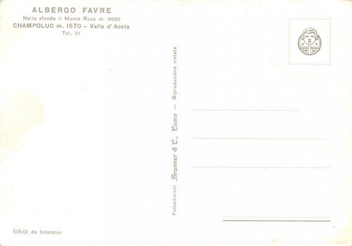 Cartolina Champoluc Albergo Favre Ed. Brunner