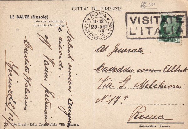 Cartolina Città di Firenze. Le Balze (Fiesole) - Lato con la scalinata.