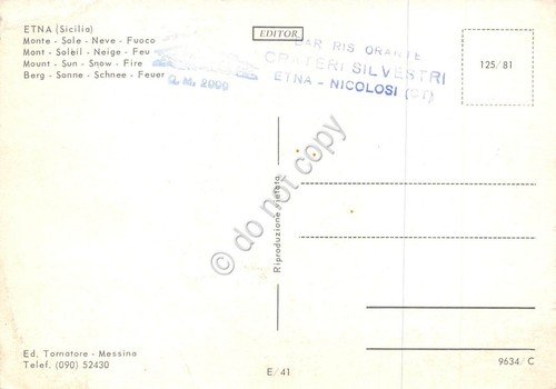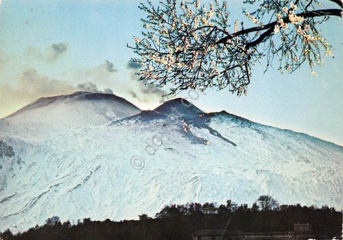 Cartolina Etna monte Sole neve fuoco (Catania)