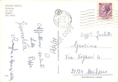 Cartolina Fiuggi Fonte una via del paese incrocio stradale Notturno 1970