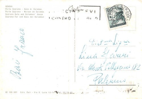Cartolina Genova Porta Soprana Casa di Colombo 1968