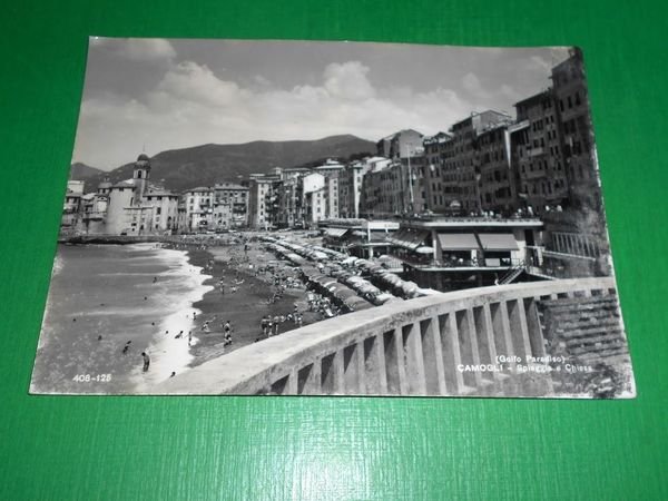 " *** Cartolina Golfo Paradiso - Camogli - Spiaggia e Chiesa. La cartolina non è viaggiata. Databile 1955 ca. Formato grande. Rif. numero 36839 Per appassionati, studiosi e collezionisti