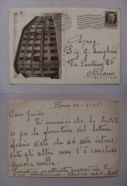 Cartolina Hotel Bologna ROMA 1935