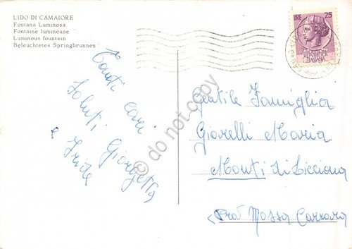 Cartolina Lido di Camaiore fontana luminosa notturno (Venezia)
